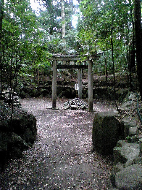 三本足 鳥居 古墳の前に