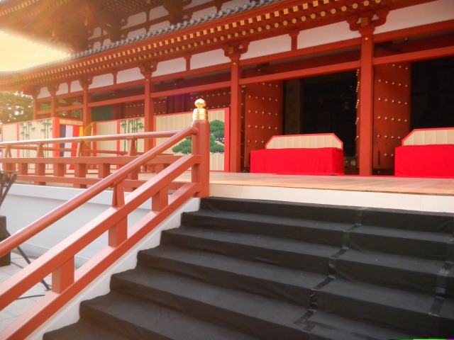 連子窓(れんじまど) 越しに 東塔・西塔・金堂 薬師寺 舞台 平城遷都1300年祭り 中村勘三郎さんの 船弁慶 薬師寺の仏さんに奉納 勘三郎さんの平知盛の幽霊は 身振りが おもしろうて!! |